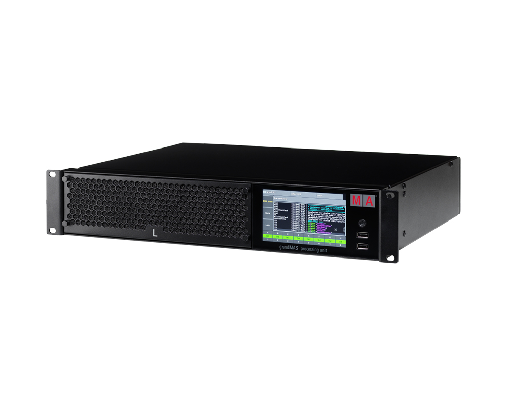 grandMA3 processing units offer a perfect system overview on the integrated touchscreen. This easy access to important functions allows for best maintenance if installed in a dedicated rack whilst every function can be monitored from the grandMA3 session.