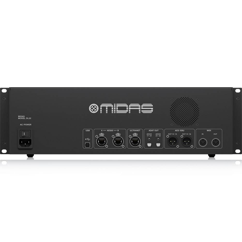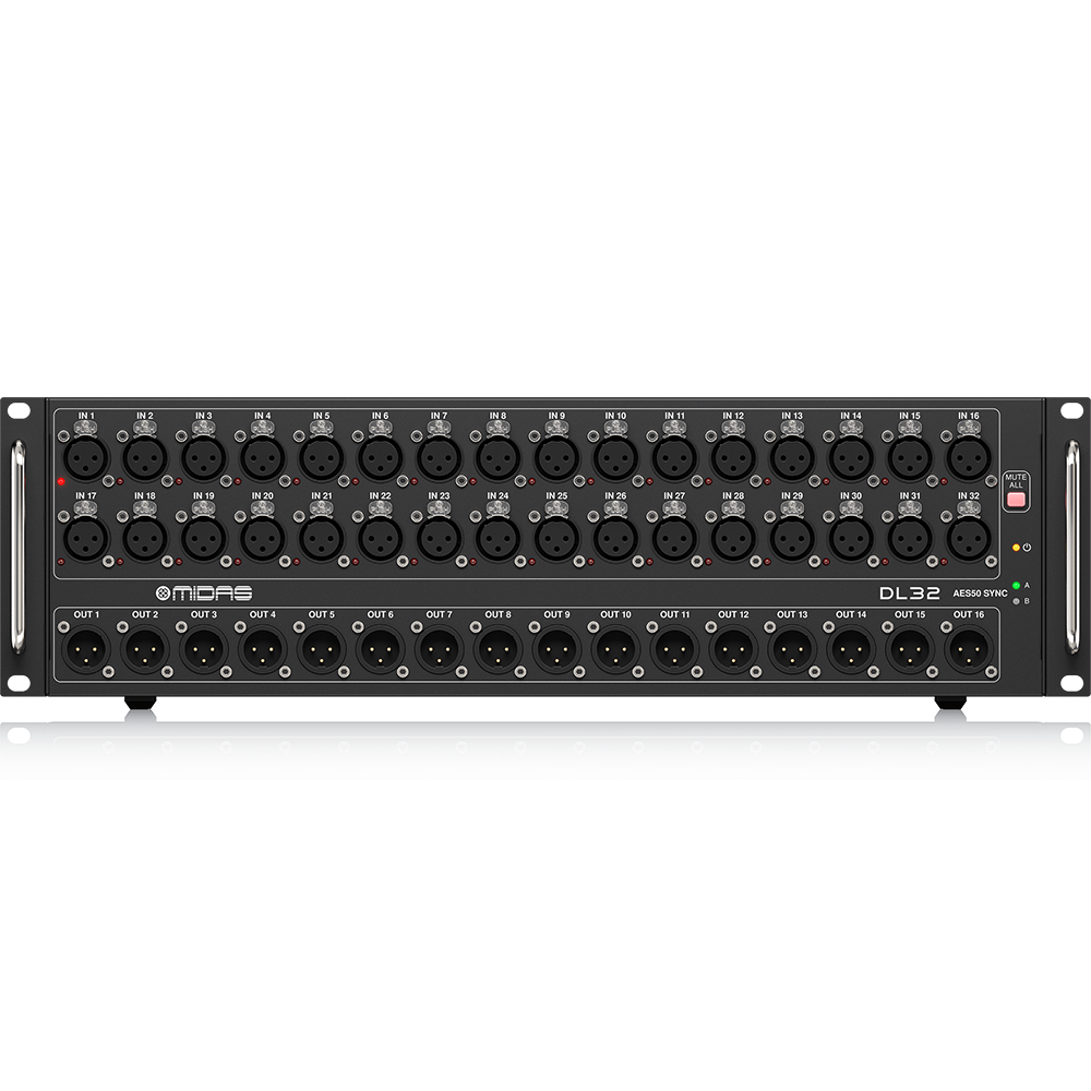 32 award-winning Midas PRO microphone preamplifiers with switchable 48 V phantom power